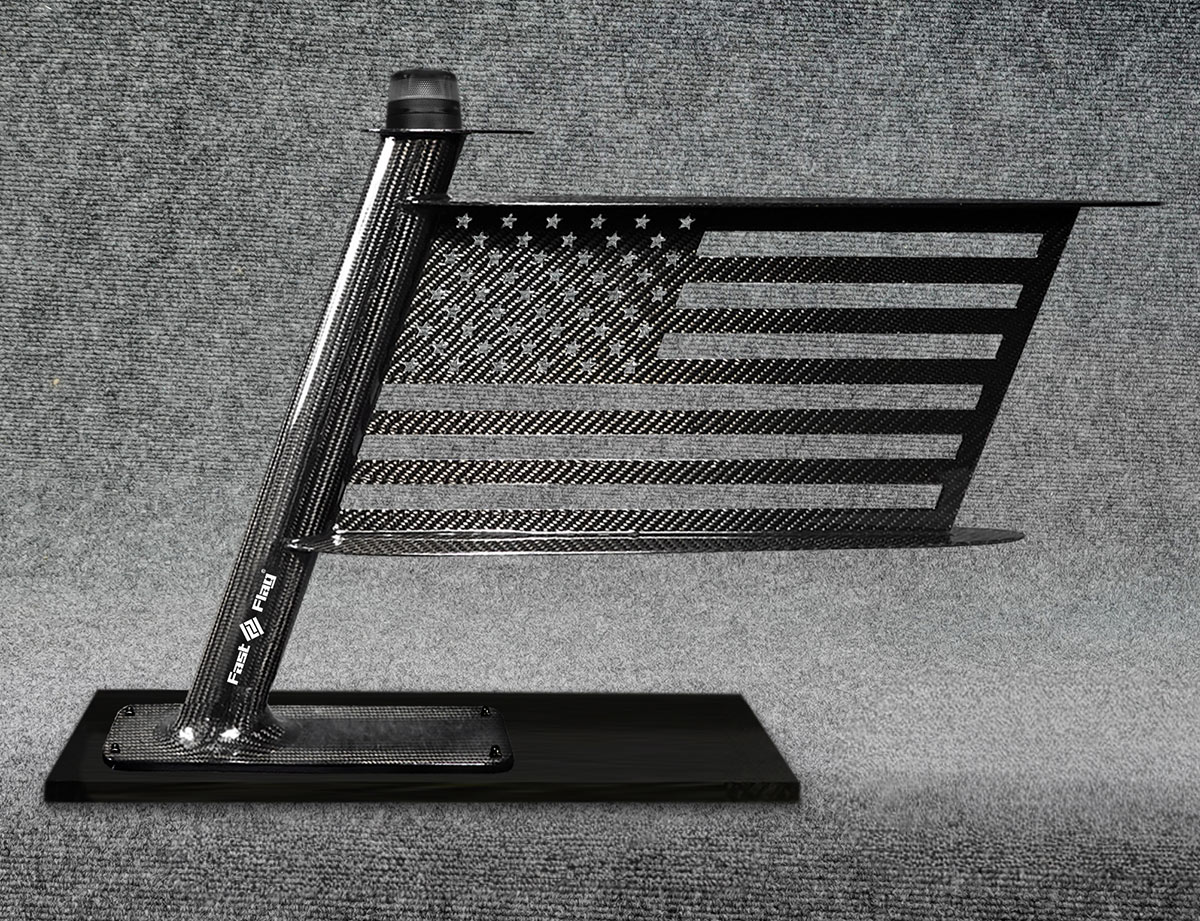 The CF-Series of flags are made entirely out of carbon fiber which makes these flags extremely strong yet lightweight making these flags ideally suited for performance boats where weight reduction is a factor. Like our aluminum flags, the stencil cut flags have the 70-degree aft leaning stance that makes each flag look like it is moving fast even when standing still, giving them their distinctive appeal that all Fast-Flags are known for.